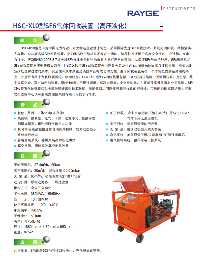 HSC-X10型是專為中國電力行業(yè)、開關(guān)制造企業(yè)設(shè)計制造,采用國際先進(jìn)SF6回收技術(shù),系統(tǒng)無油回收、結(jié)構(gòu)緊湊、大容量、全功能高端SF6回收裝置。