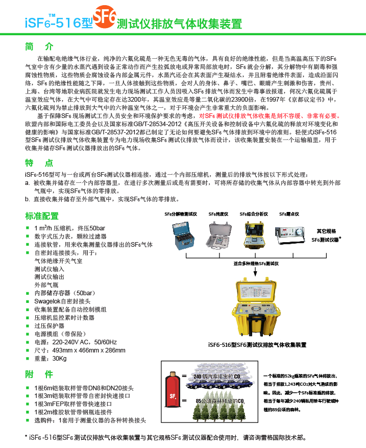 輕便式iSF6-516型SF6 測試儀排放氣體收集裝置專為電力現(xiàn)場收集SF6 測試儀排放氣體而設(shè)計,該收集裝置安裝在一個運輸箱里,用于收集并儲存SF6 測試儀器排放出的SF6 氣體。