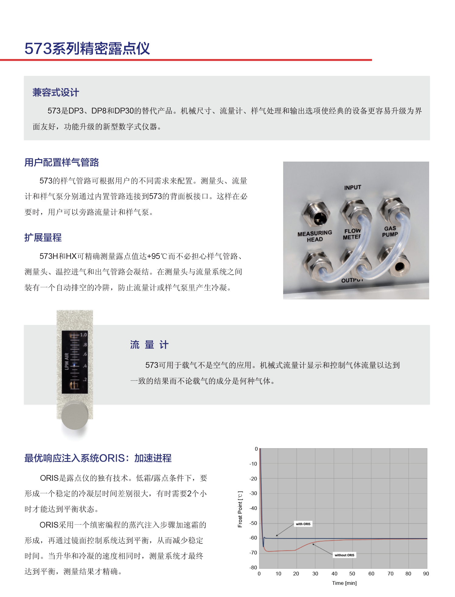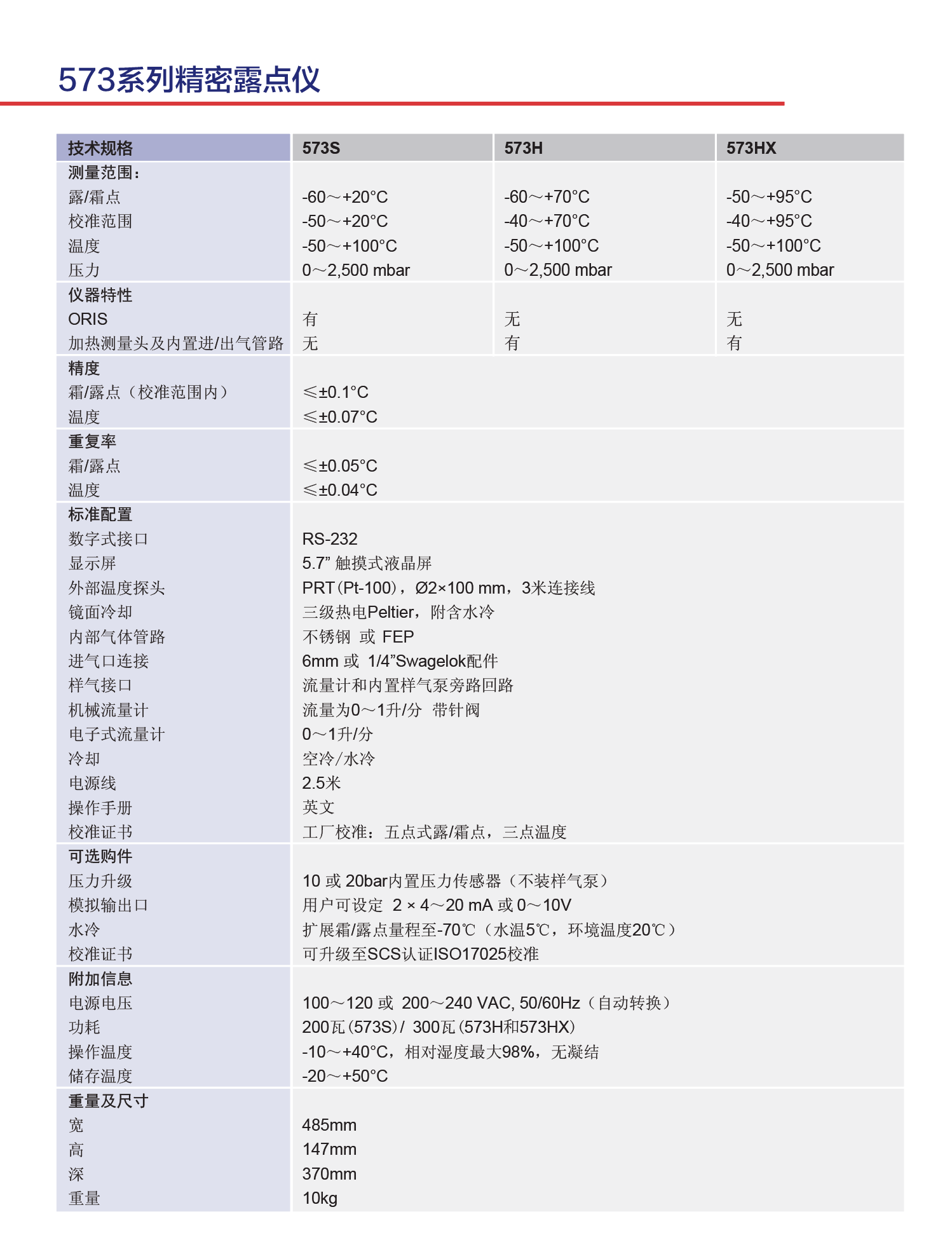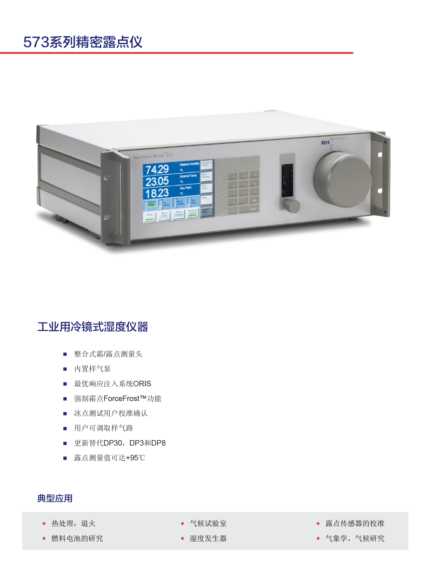 573露點(diǎn)鏡面儀是一種高性能機(jī)架式儀表,尺寸19英寸,非常適合于固定的工業(yè)裝置。573配備了一個(gè)一體化測(cè)量頭、壓力傳感器、采樣泵和流量計(jì),可廣泛應(yīng)用于連續(xù)精確監(jiān)測(cè)霜/露點(diǎn)和絕對(duì)濕度值。573H和573HX的一個(gè)特殊之處在于自動(dòng)疏水閥,用戶可以控制在95度以下露點(diǎn)測(cè)量時(shí)的冷凝物的排放。