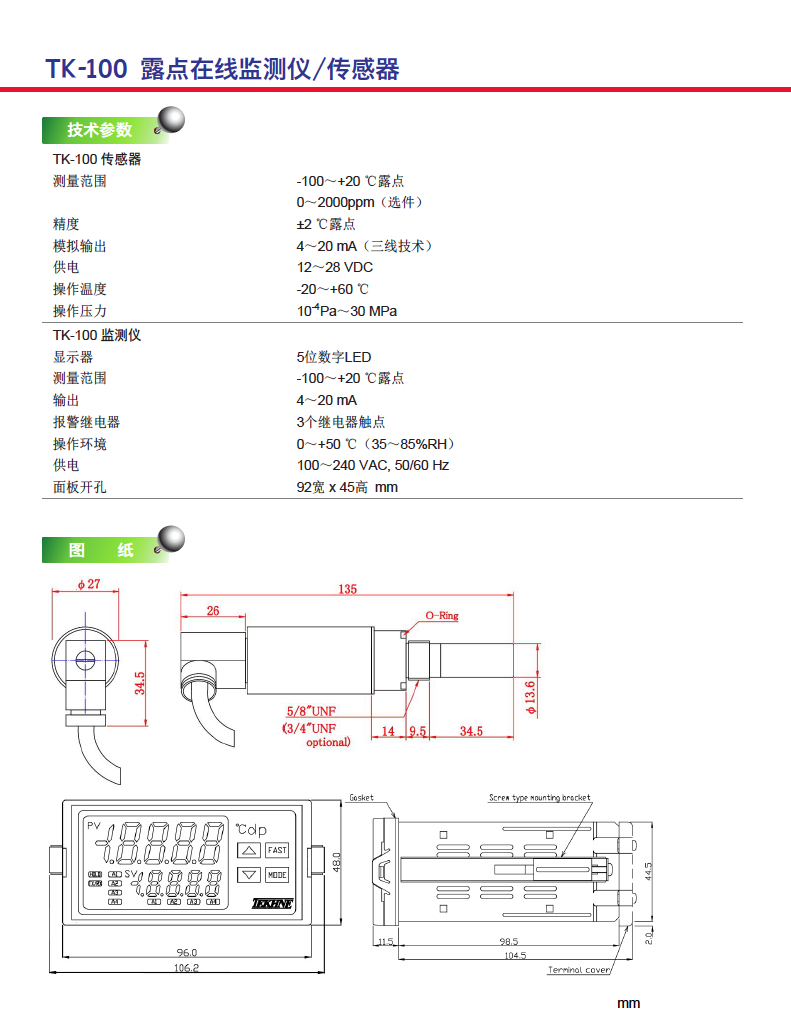 TK-100露點(diǎn)在線監(jiān)測(cè)儀/傳感器