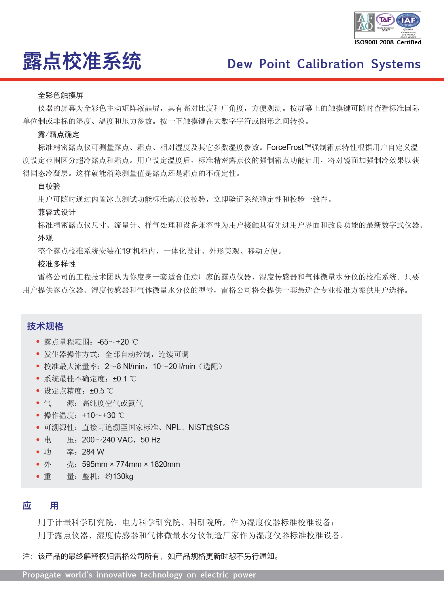 雷格國際最新推出露點(diǎn)校準(zhǔn)系統(tǒng)是用來檢定和校準(zhǔn)露點(diǎn)儀、濕度傳感器和氣體微量水分儀。該露點(diǎn)校準(zhǔn)系統(tǒng)主要由采用分流法原理最新開發(fā)的濕度發(fā)生器和高精密露點(diǎn)儀兩部分優(yōu)化設(shè)計(jì)集合而成,系統(tǒng)提供的標(biāo)準(zhǔn)露點(diǎn)氣體的發(fā)生范圍為-65 ~ +20℃露點(diǎn)溫度。