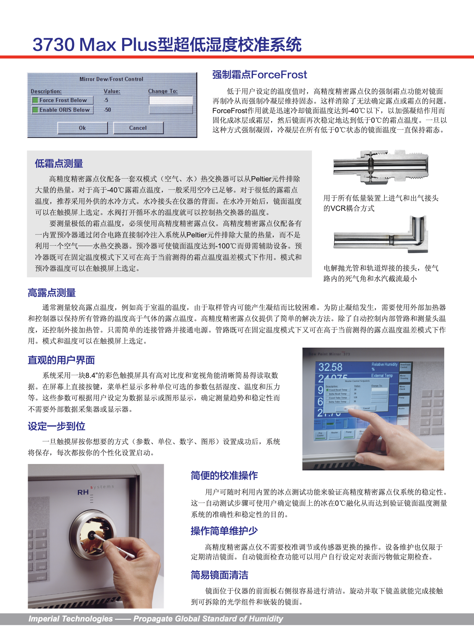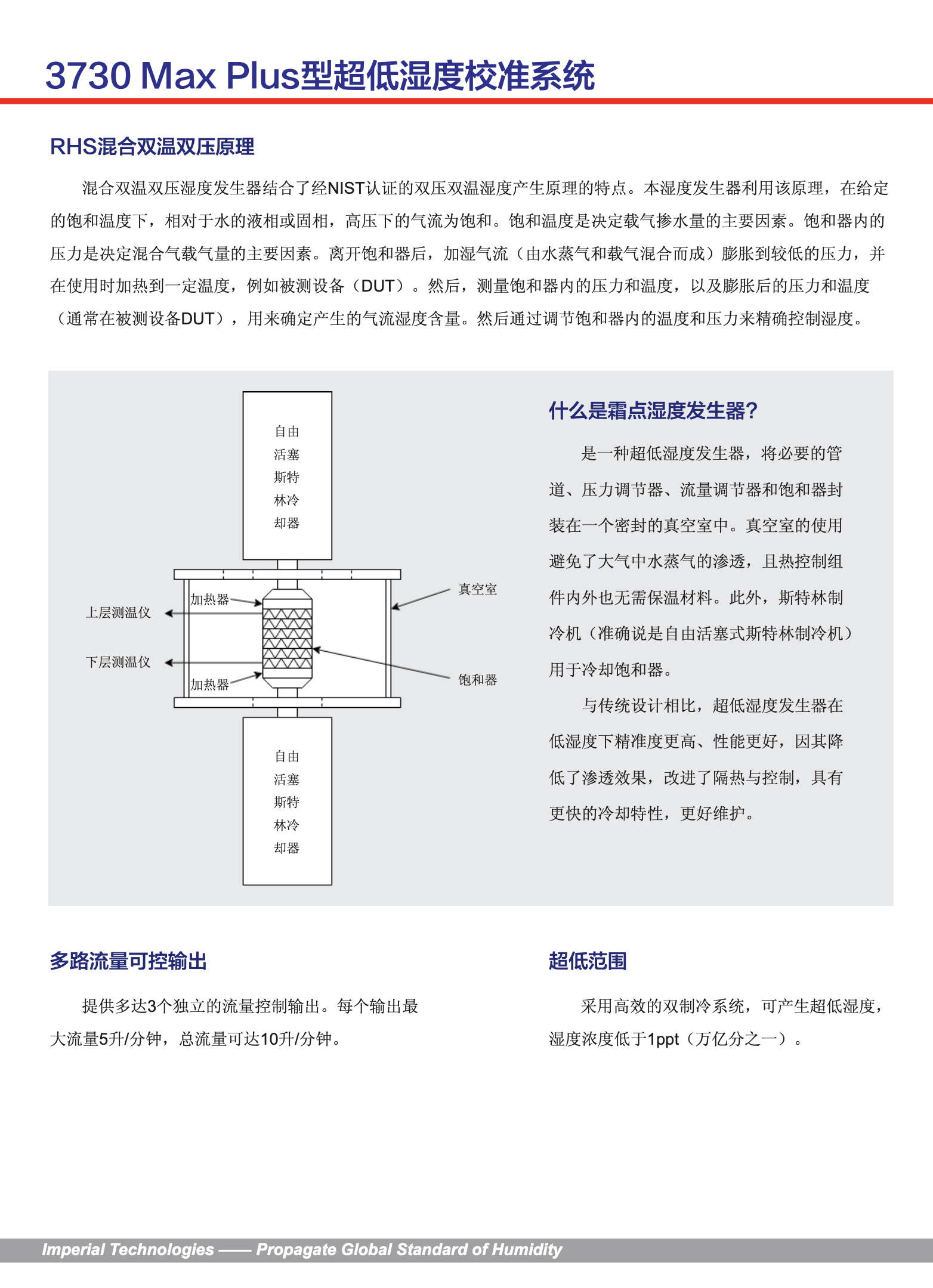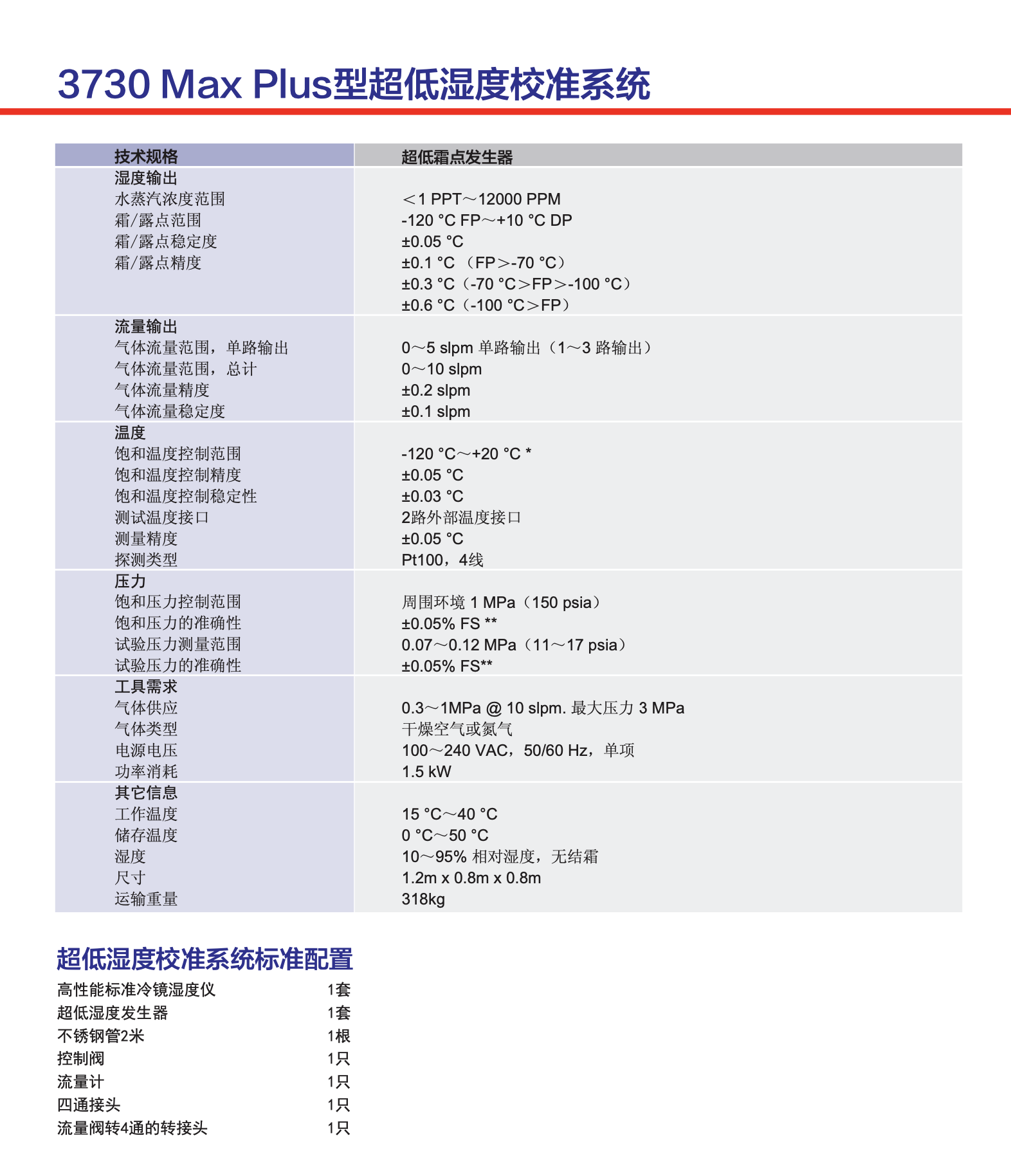 我司最新推出3730 Max Plus型超低濕度露點(diǎn)校準(zhǔn)系統(tǒng)是專用來檢定和校準(zhǔn)露點(diǎn)儀、濕度傳感器和氣體微量水分儀是國際上先進(jìn)濕度校準(zhǔn)設(shè)備。該超低濕度露點(diǎn)校準(zhǔn)系統(tǒng)主要由采用冷鏡原理高精密露點(diǎn)儀和雙溫雙壓法原理的全自動(dòng)低濕度發(fā)生器兩大部分優(yōu)化設(shè)計(jì)集合而成,超低濕度露點(diǎn)校準(zhǔn)系統(tǒng)提供標(biāo)準(zhǔn)氣體露點(diǎn)的發(fā)生范圍為-95~+20°C露點(diǎn)溫度。