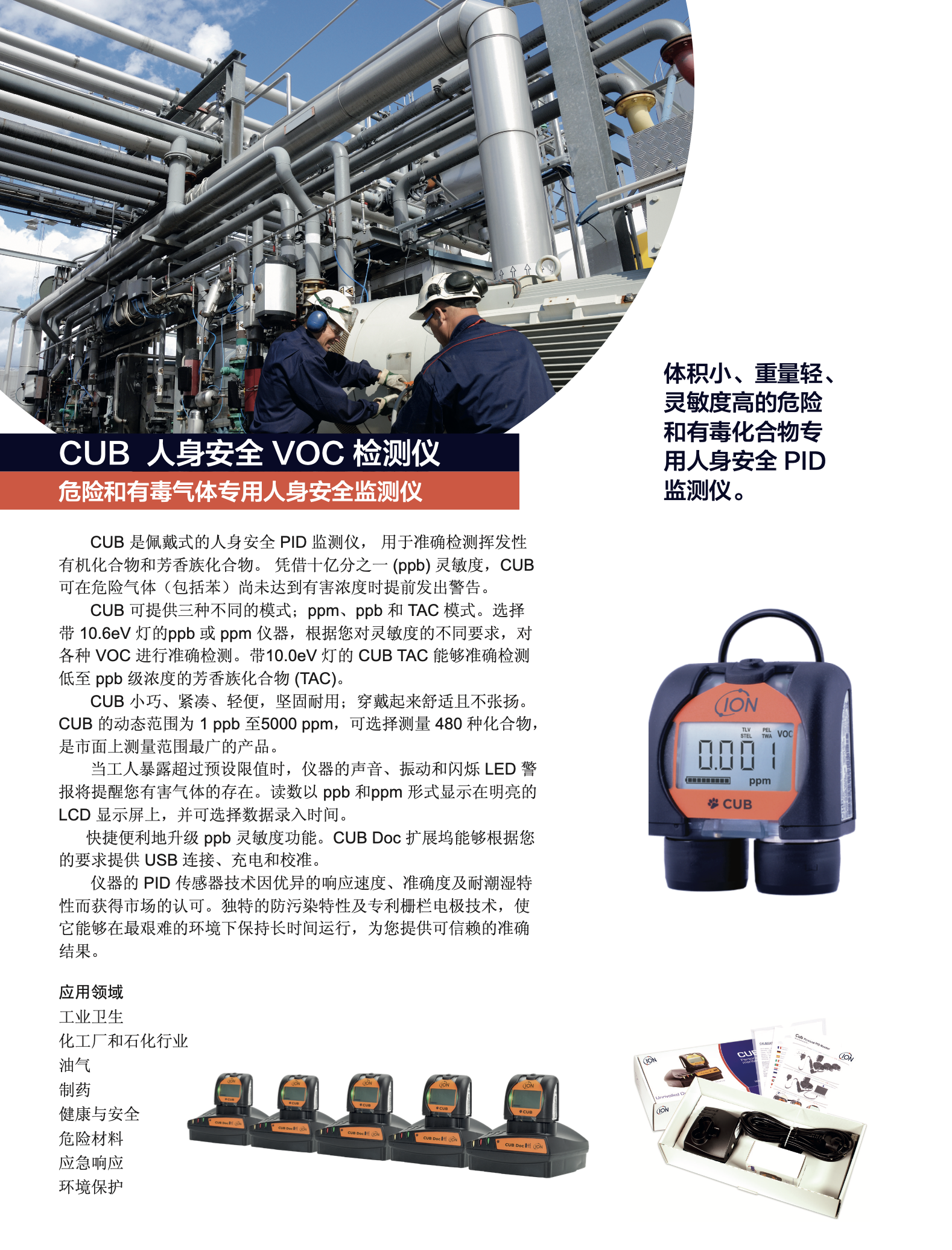 CUB 是佩戴式的人身安全PID監(jiān)測儀,用于準(zhǔn)確檢測揮發(fā)性有機(jī)化合物和芳香族化合物。憑借十億分之一(ppb)靈敏度,CUB 可在危險(xiǎn)氣體 (包括苯)尚未達(dá)到有害濃度時(shí)提前發(fā)出警告。