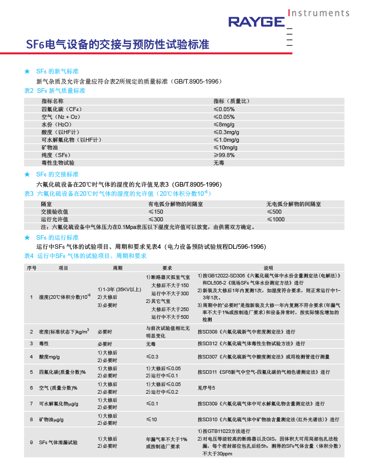 SF6電氣設(shè)備的交接與預防性試驗標準