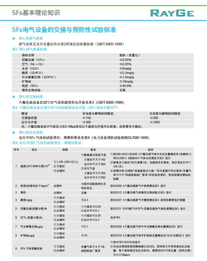 SF6 electrical equipment handover and preventive test standards